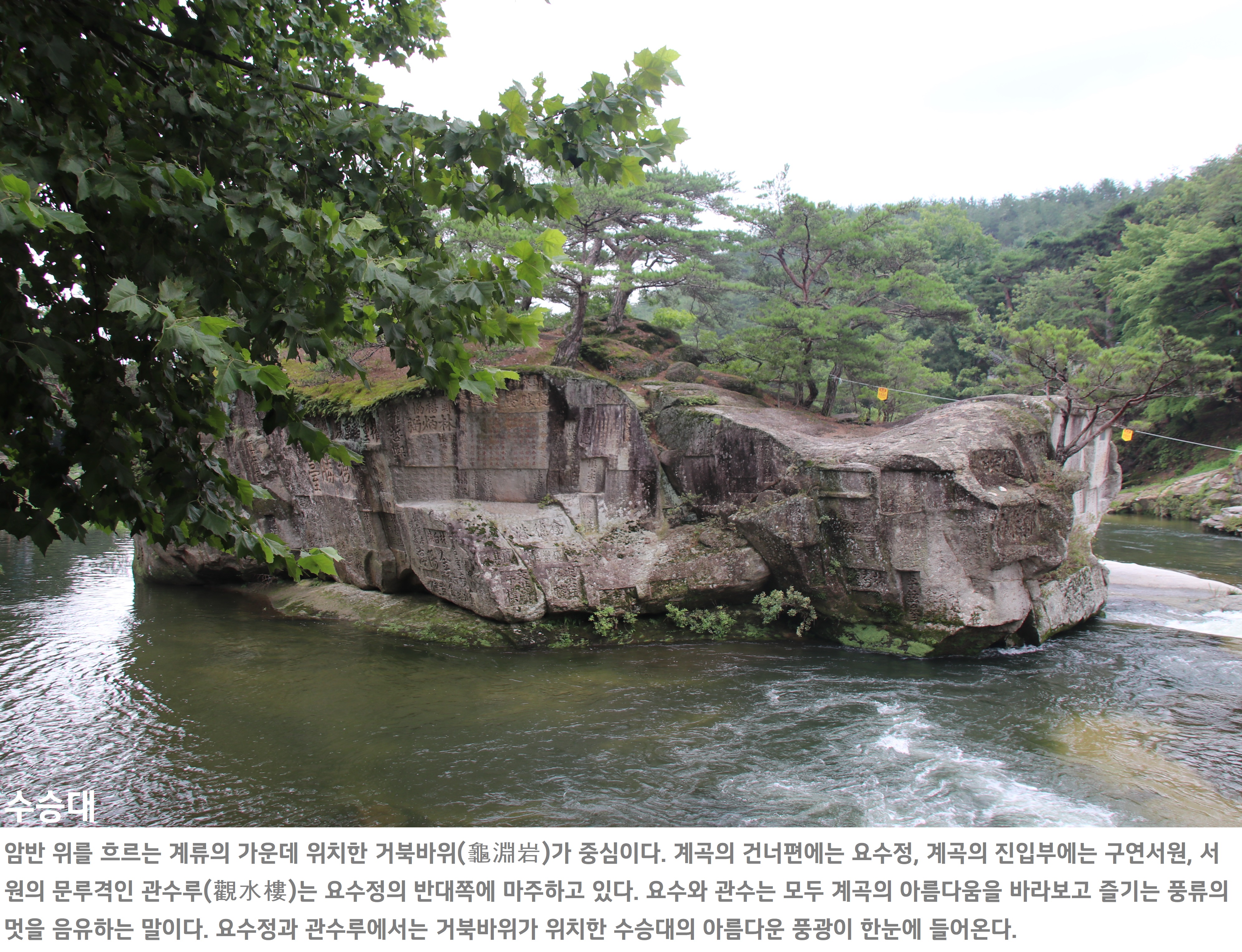 거창 수승대는 계곡과 거북바위가 멋진 곳으로 정평이 나 있지만 주변 문화유산은 잘 알려지지 않았다. 이에 거창군은 수승대에서 산과 고개를 넘고 임도를 따라 걸으며 문화유산을 둘러보는 코스를 개발해 널리 알리고 있다.